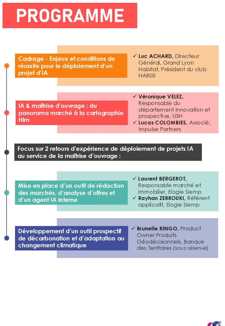 Les clubs BAT'IM et HABSIS vous proposent de décrypter ces enjeux et partager des retours d’expérience autour des usages émergents de l’IA dans la maîtrise d’ouvrage.